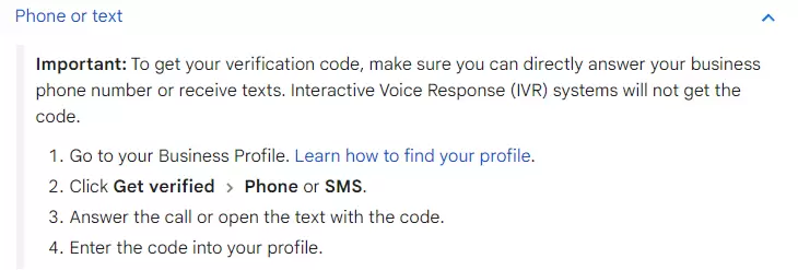To get your verification code, immediately answer your business phone number or receive texts. Interactive Voice Response (IVR) systems will not get the code.