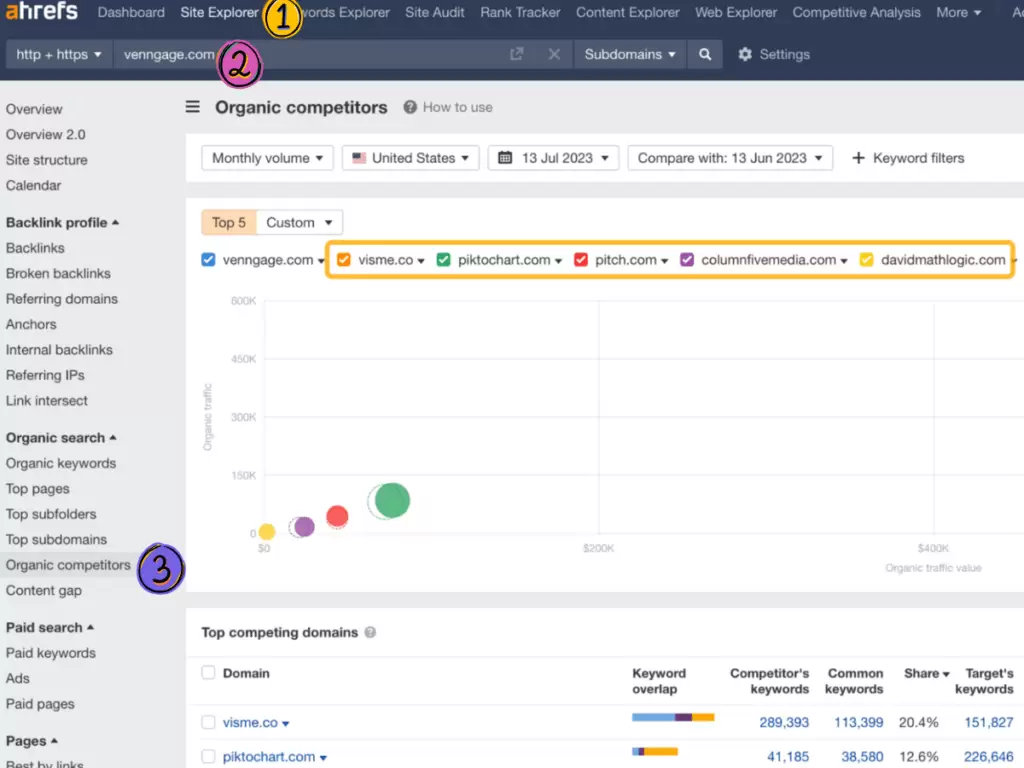 • Site Explorer: Ahrefs’ Site Explorer provides a detailed view of any domain’s backlink profile and organic search traffic. You can analyze which keywords are driving traffic to your competitors’ sites and identify their most popular content.